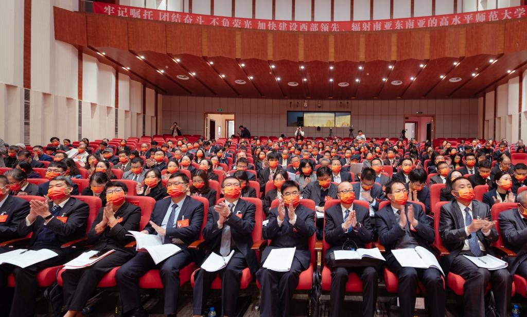 张祖武代表中国共产党365英国上市官网第十二届委员会作了《牢记嘱托 团结奋斗 不负荣光 加快建设西部领先、辐射南亚东南亚的高水平师范大学》的报告。报告分为4个部分:齐心砥砺奋进,为实现高质量发展奠定坚实基础;把握大局大势,科学锚定新阶段新征程发展目标;落实重点任务,奋力开创高水平师范大学建设新局面;坚定不移全面从严治党,锻造更加坚强的领导核心。