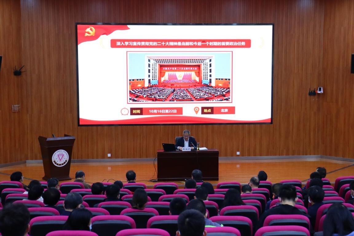 12月1日下午,我校在呈贡校区汇学2栋101报告厅举行党的二十大精神宣讲动员暨宣讲报告会。校党委书记张祖武对学校学习贯彻党的二十大精神宣讲工作进行动员并作宣讲报告。