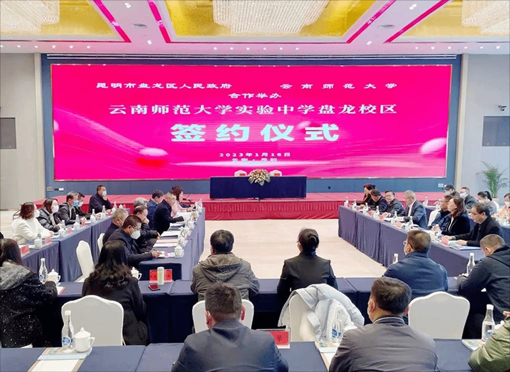 1月16日,我校与昆明市盘龙区人民政府签署基础教育合作框架协议,双方将合作开办365英国上市官网实验中学盘龙校区。该校办学地址位于昆明市盘龙区茨坝街道办事处青松路68号,预计今年全面招生。