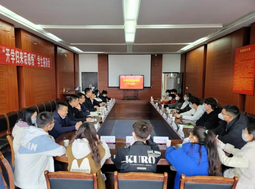 座谈会前,师生观看了国务院联防联控机制新闻发布会针对2023年春季学期学校开学返校政策的视频。学生代表依次围绕学习、生活、实践、就业等方面的问题和困难畅所欲言、坦诚交流。同学们分享了对国家疫情防控措施调整的认识和了解情况,聚焦了当前国际国内社会经济热点问题,探讨了社会发展新动向,分享了自己寒假生活的收获与感悟,以及对新学期的期待与规划。针对学校教育管理服务工作,同学们表达了个人在专业学习与成才发展、个人综合能力提升、就业和升学选择与准备、学生社团活动的内容形式、校园健康打卡程序优化、教学内容与实践结合、宿舍卫生管理措施、图书馆自习室学习、食堂饭菜供应等方面的意见和建议。