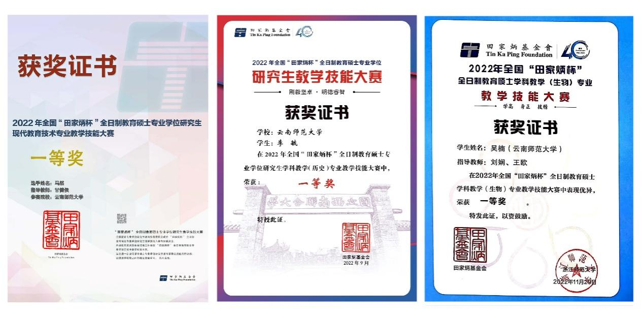 近日,由全国教育专业学位研究生教育指导委员会指导、田家炳基金会冠名主办的全国2022年“田家炳杯”全日制教育硕士专业学位研究生教育技能大赛落下帷幕。我校参赛选手表现优异,共有45名选手进入决赛并全部获奖,其中一等奖4项、二等奖10项、三等奖12项、优秀教学设计奖19项,获奖总数较去年翻一番。