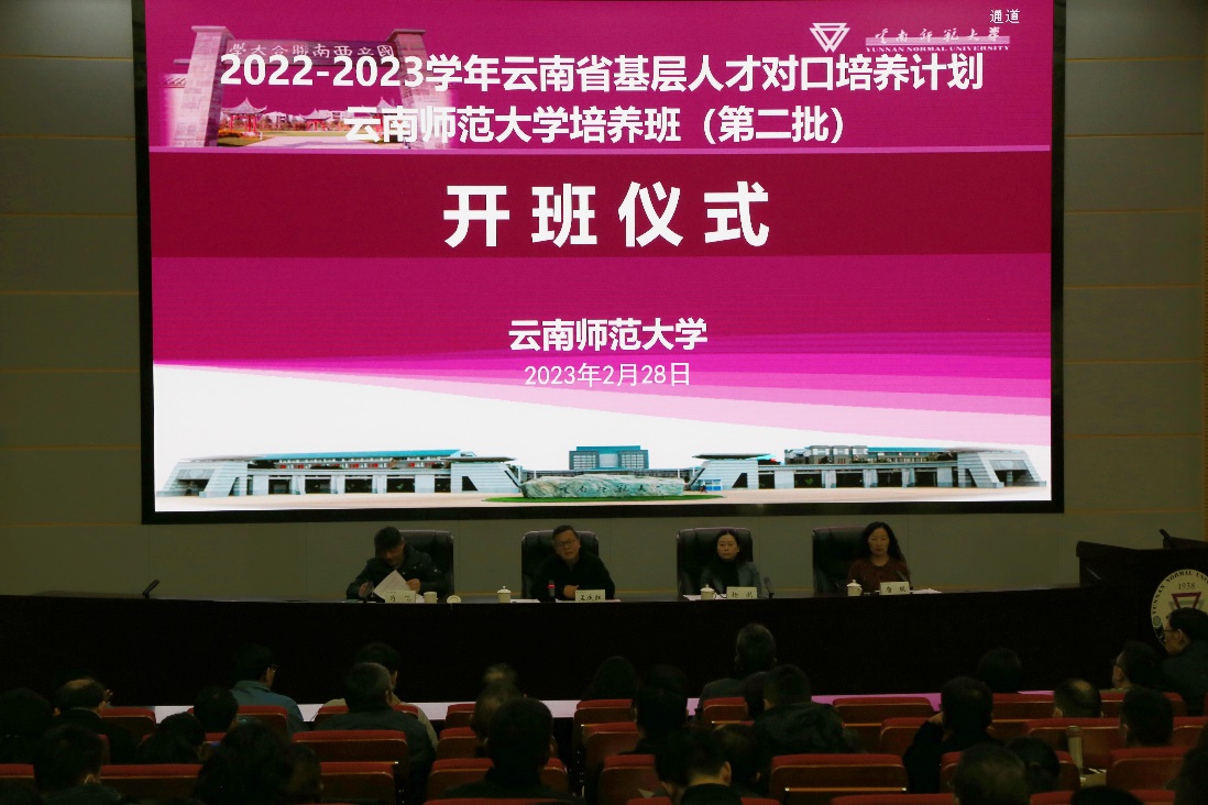 工作会后,2022-2023学年云南省基层人才对口培养计划第二批培养班开班仪式在校史馆报告厅举行。唐瑛主持仪式,孟庆红致辞。校党委组织部,各学院(学部)负责人、导师以及来自全省16个州市的58名学员参加开班仪式。