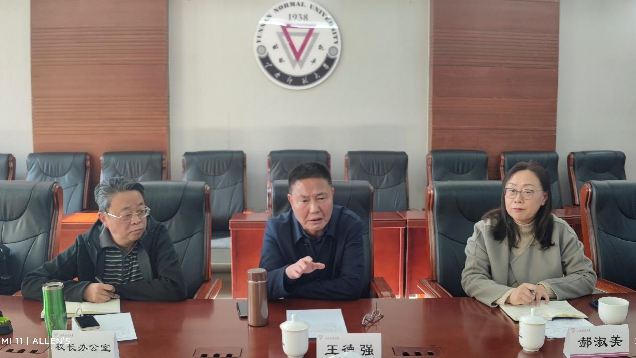 3月1日下午,镇雄县杨绪春县长一行到访我校,就镇雄附属中学下一阶段合作办学进行交流。校长王德强,副校长郝淑美,校办、对外合作交流处、基础教育集团负责人参加了座谈,座谈会由郝淑美主持。