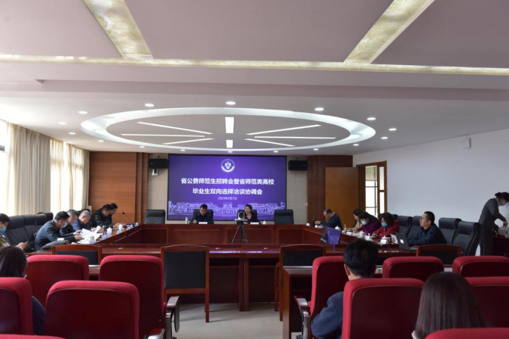 3月7日下午,我校在呈贡校区行政楼340会议室召开省公费师范生招聘会暨省师范类高校毕业生双向选择洽谈协调会,副校长甘健侯,相关职能部门负责人,各学院(学部)副书记,就业处全体人员参加会议。协调会由就业处处长李红主持。