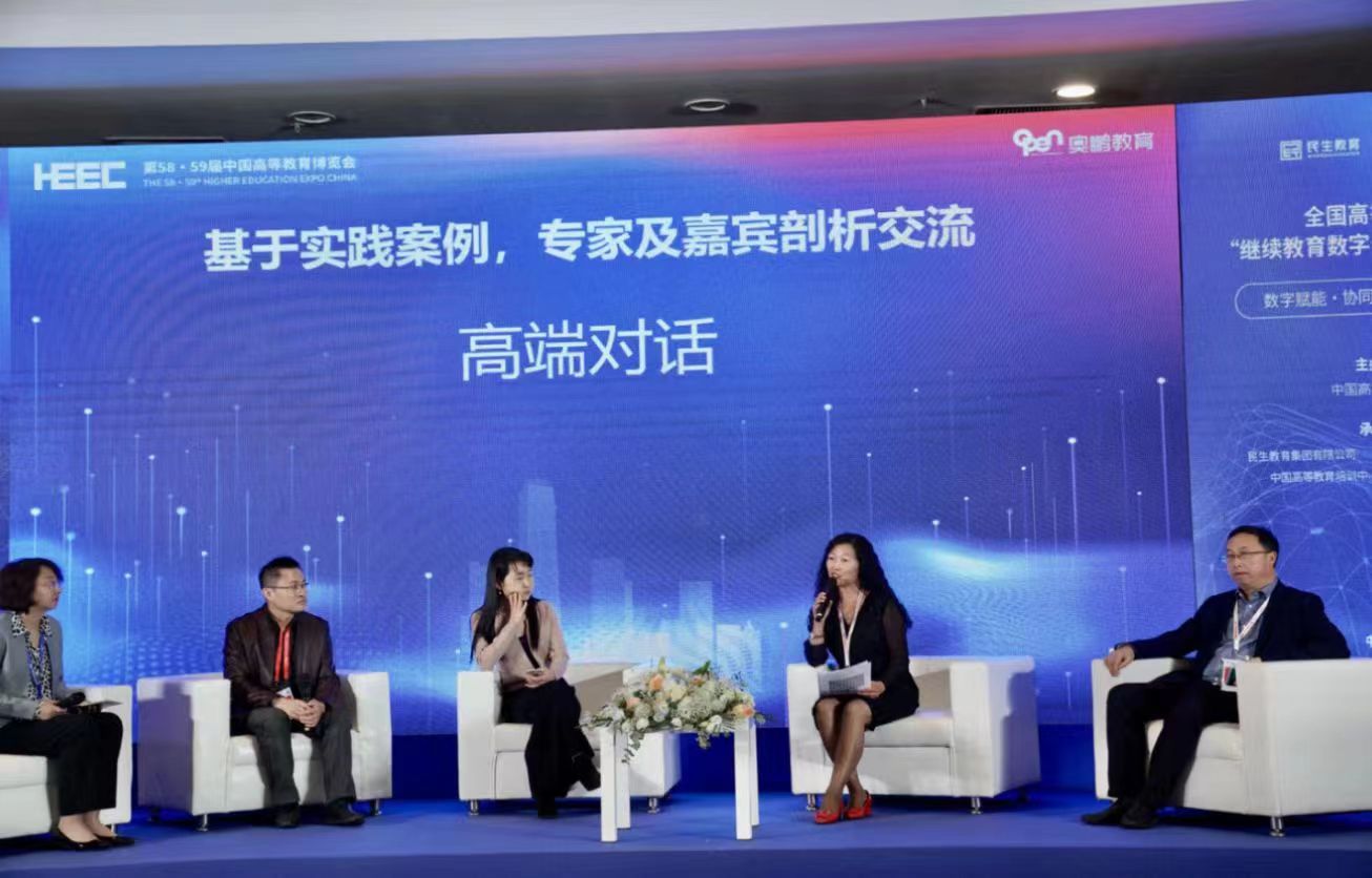 本届博览会为期3天,以“校地聚合·产教融合:高质量发展”为主题,首次采取两届联办。近20位“两院”院士、千余名专家学者,各省级教育部门负责同志和500多位高校负责同志参会。博览会主体活动由高新装备展览展示、高水平会议论坛、信息化及高端成果发布三大板块组成。在“继续教育数字化转型”分论坛上,我校继续教育学院院长唐瑛、北京师范大学学习设计与学习分析重点实验室主任冯晓英、西南大学卓越智能教学中心主任吴航、四川师范大学继续教育学院院长王官诚共同展开高端对话,就数字化转型的关键环节与核心要素、高校继续教育数字化转型技术与教育的深度融合、教师素质素养等议题进行交流。