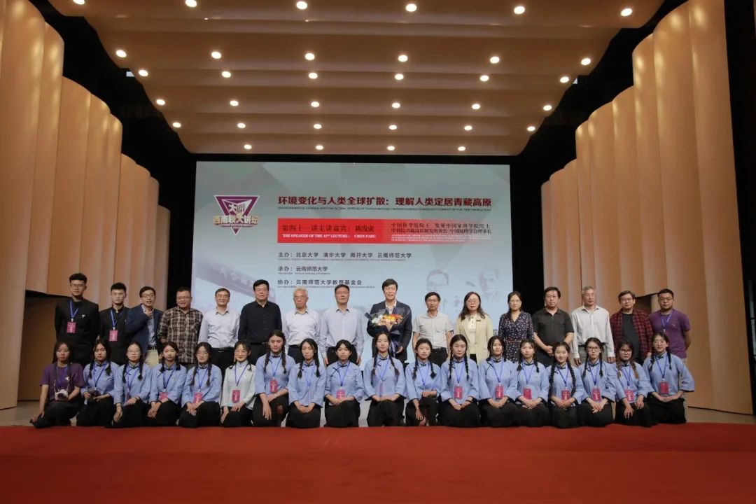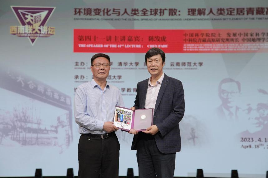 4月18日,由北京大学、清华大学、南开大学、365英国上市官网四校共同主办,365英国上市官网承办的“西南联大讲坛”第41讲在我校呈贡校区举行。中国科学院院士、发展中国家科学院院士、中科院青藏高原研究所所长、中国地理学会理事长陈发虎作为主讲嘉宾,为与会在昆师生代表带来题为“环境变化与人类全球扩散:理解人类定居青藏高原”的讲座。讲座同步进行了网络直播。
