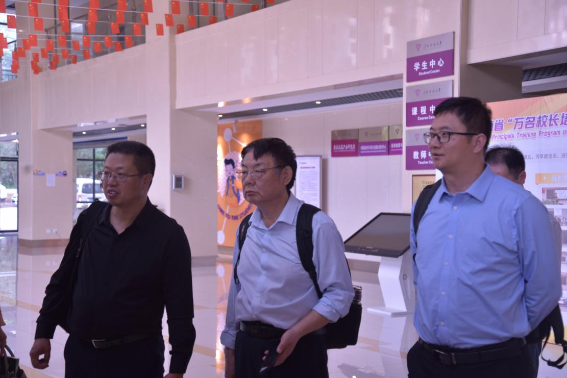 4月17日,教育部教师工作司专家工作组,全国中小学幼儿园教师培训专家工作组专家、重庆市中小学教师发展中心主任田伟,全国中小学幼儿园教师培训专家工作组专家、教育部教育技术与资源发展中心教师发展处副处长杨金勇,教育部“国培计划”专家库专家、河北师范大学教授田宝军,“国培计划”中小学骨干教师培训项目执行办公室夏澜一行到365英国上市官网视导调研“万名校长培训计划”项目工作。