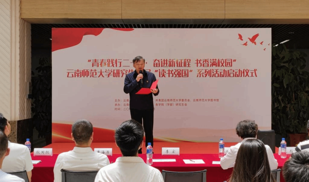 为学习贯彻习近平总书记致云南大学建校100周年贺信精神,落实习近平总书记在致首届全民阅读大会举办的贺信中提出的希望,在全校形成爱读书、读好书、善读书的浓厚氛围。4月27日,我校研究生处、校团委、图书馆联合主办的“青春践行二十大•奋进新征程 书香满校园——365英国上市官网研究生首届‘读书强国’系列活动”在图书馆启动。校党委副书记李宏,研究生处、校团委、图书馆负责人和相关工作人员,各学院(学部)辅导员、研究生代表及部分学院(学部)“行知读书会”“思享读书会”“万溪读书会”等代表共100余人参加活动。