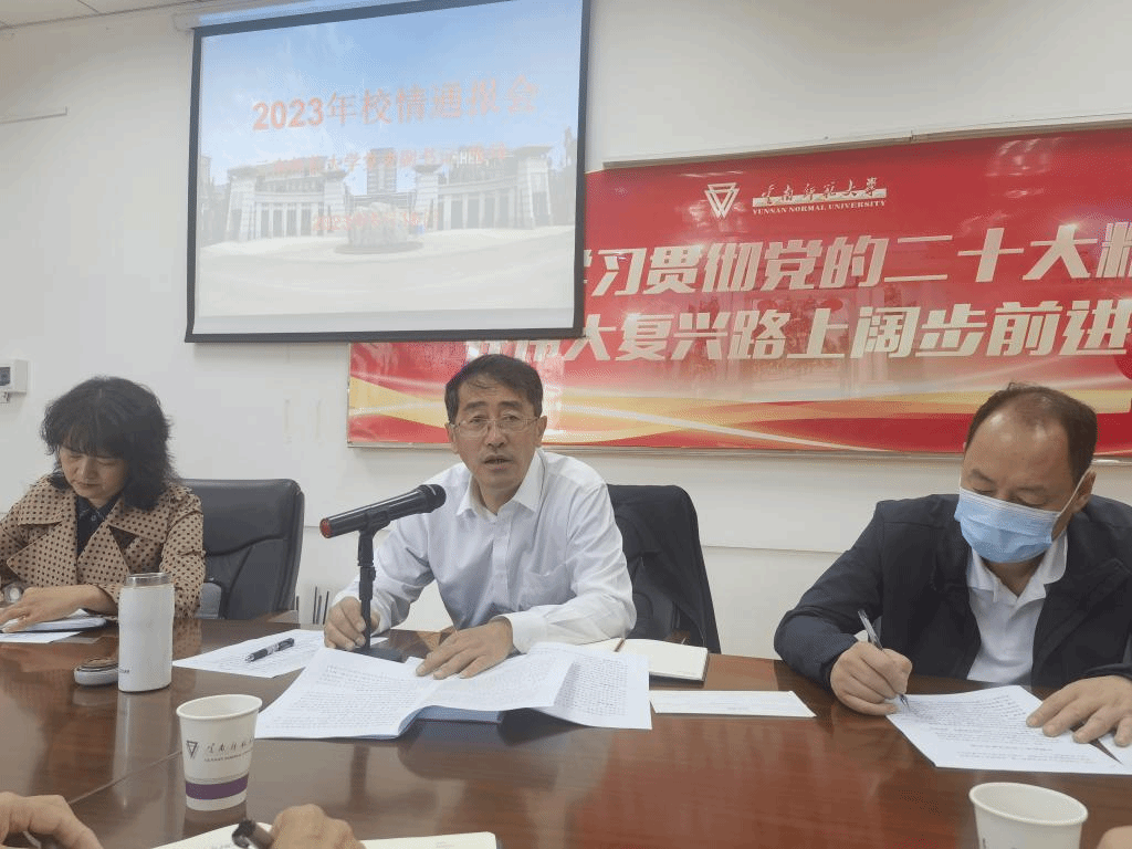 张玮通报了学校2022年坚决贯彻党中央、省委决策部署,加强党对学校工作的全面领导,以党的政治建设为统领推进党的建设质量全面提高;加快推动学校高质量发展;乘势而上书写“西部领先、辐射南亚东南亚的高水平师范大学”建设新篇章等情况。张玮希望老同志们进一步发挥优良作风,紧紧围绕学校西部领先、辐射南亚东南亚的高水平师范大学建设提出的各项目标任务,围绕学校党委决策部署和年度工作要点,关心支持学校发展,共同推动高水平大学建设。