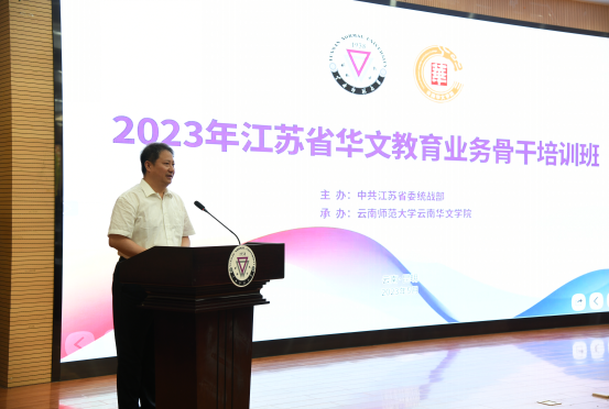 5月29日,由江苏省委统战部主办,云南华文学院承办的“2023年江苏省华文教育业务骨干培训班”在我校顺利开班。江苏省委统战部副部长徐东海、江苏省委统战部侨务事务处处长余晓川、云南省委统战部侨务事务处处长胡恒富、云南华文学院党委书记和雪莲等领导出席开班仪式,来自江苏省40余家华文教育相关单位的46名学员参加了开班仪式。