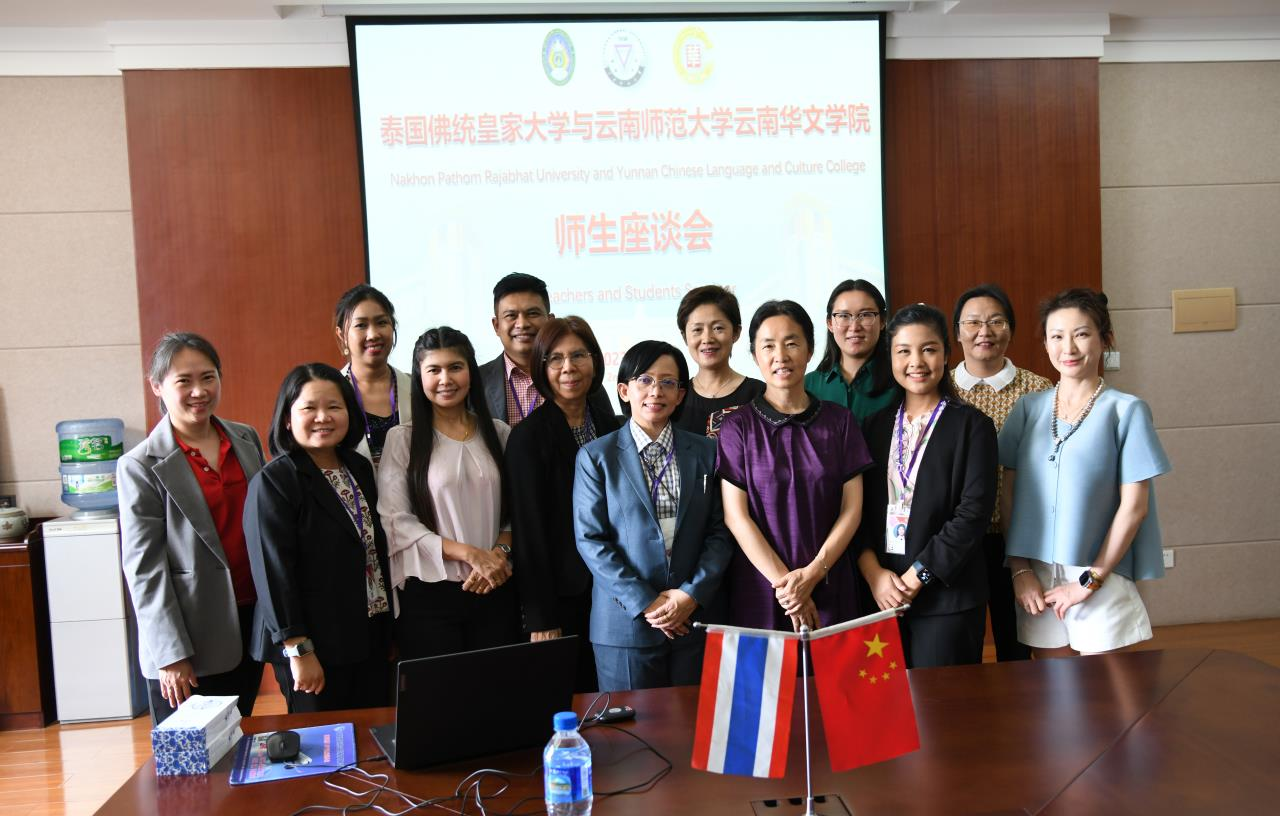 随后,我校与泰国佛统皇家大学部分学院院长及教师座谈会在呈贡主校区行政楼211会议室召开。我校社会科学工作办公室、教育学部、物理与电子信息学院、化学化工学院、信息学院相关负责人,与泰国佛统皇家大学教育学院院长、人文和社会科学学院院长、管理学院院长以及科学技术学院教师就进一步拓展多领域、多学科合作的相关事宜进行了交流。