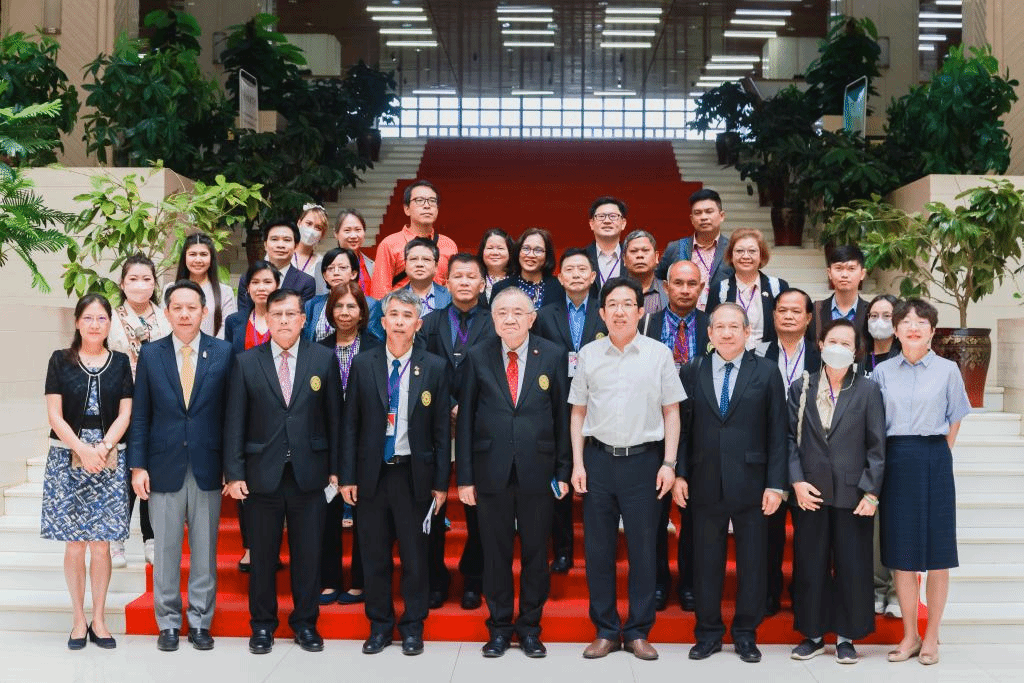 6月2日,泰国佛统皇家大学校董事会主席吴希萨恩•坦差、校长威拉·宾高一行31人到我校考察交流。
