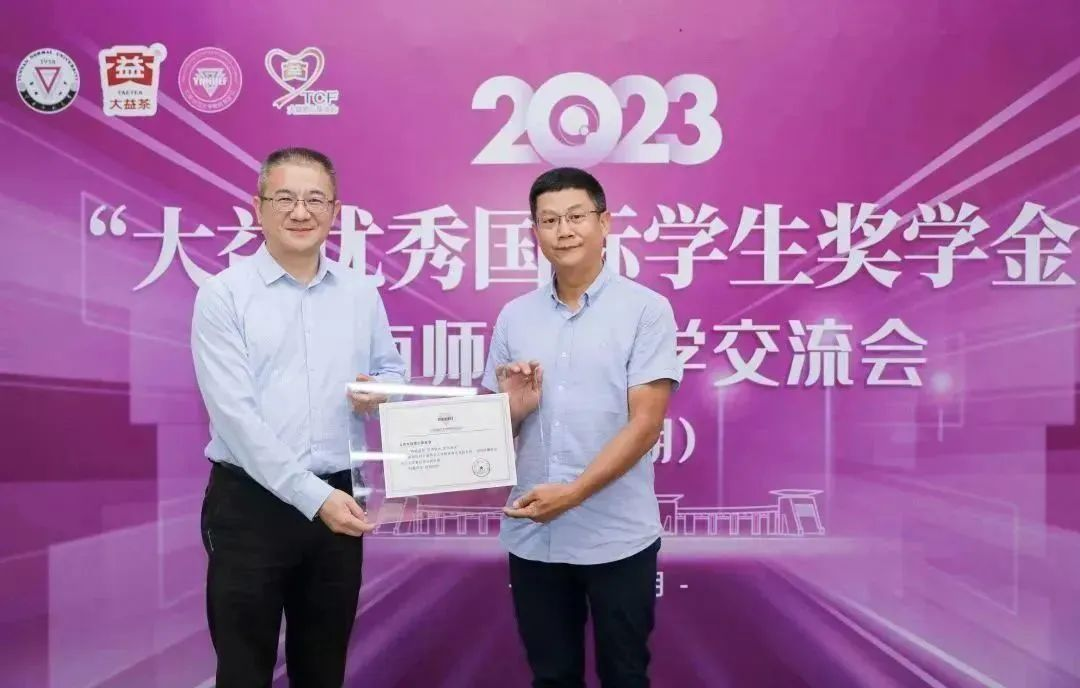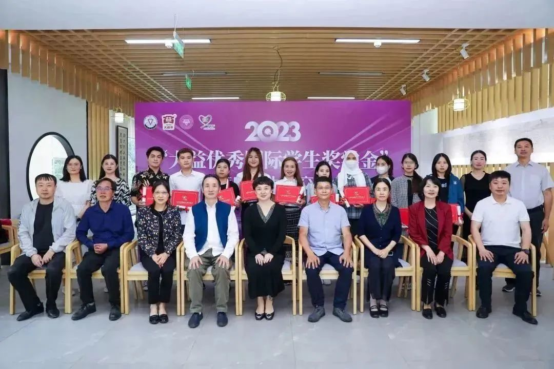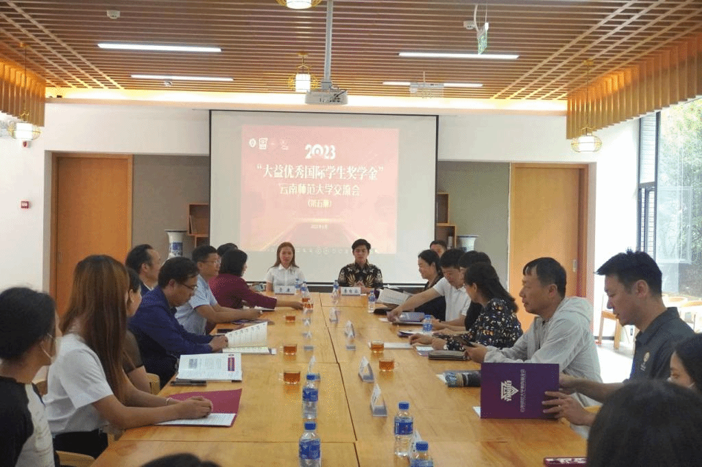 近日,2023年“大益优秀国际学生奖学金”交流座谈会在我校呈贡校区华文学院茶文化教室举行。大益集团副总裁、大益爱心基金会监事长李占文,大益爱心基金会秘书长高云飞、副秘书长伍洪海,大益优秀国际学生奖学金项目负责人邱红,我校党委书记张祖武、华文学院党委书记和雪莲以及相关单位负责人、获奖国际学生参加授予仪式暨交流座谈会。会议由对外合作交流处处长黄瑛主持。
