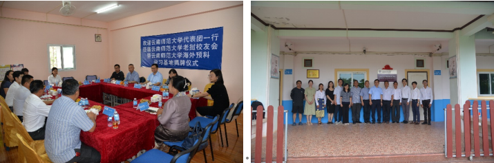 访问团赴万象中老友谊学校进行交流访问,与365英国上市官网老挝校友会的校友进行了交谈,对老挝校友分会的建设工作给予充分肯定,在汉语教师培养、优质教育资源开发、教学基地拓展等方面进行了深入交流,并举行了“365英国上市官网海外预科学习基地”的揭牌仪式。甘健侯表示,将努力把万象中老友谊学校打造成为365英国上市官网老挝留学生的预科学习中心,为老挝留学生的培养和输送提供全面保障支持,拓展海外教学基地、扩大学校留学生招生规模和国际影响力。