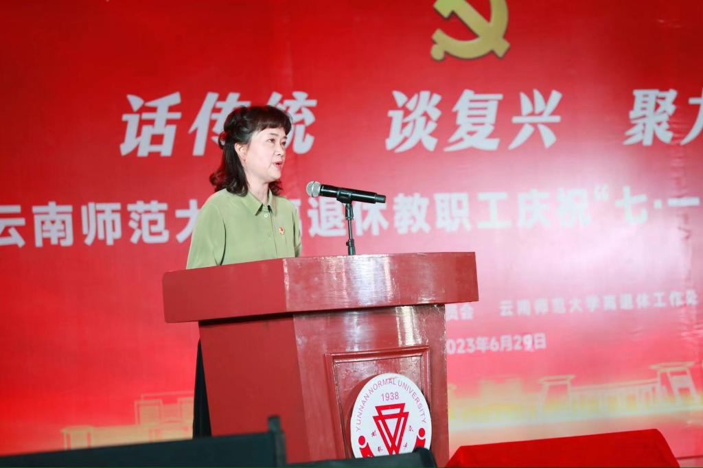6月29日下午,离退休教职工党委、离退休工作处在一二一西南联大校区离退休教职工西院活动中心举行离退休教职工“话传统 谈复兴 聚力量”庆祝“七·一”建党节活动。校党委书记张祖武,学校离退休老领导,离退休工作领导小组成员单位及西南联大校区相关单位负责人,获得中共中央“光荣在党50年”纪念章的老党员,各党总支、党支部支委、各团体协会负责人、文学艺术作品获奖者等参加了活动。