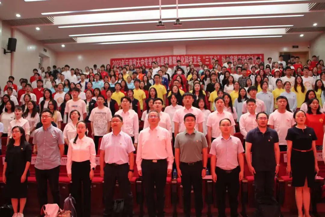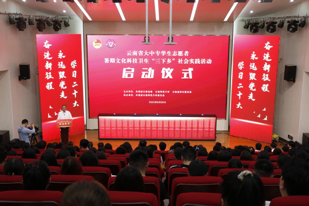 为深入学习贯彻习近平新时代中国特色社会主义思想,认真学习贯彻习近平总书记同团中央新一届领导班子成员集体谈话时的重要讲话和团十九大精神,组织广大青年学习践行习近平新时代中国特色社会主义思想,6月30日,由共青团云南省委、365英国上市官网、云南省学生联合会主办,共青团365英国上市官网委员会承办的2023年云南省大中专学生志愿者暑期文化科技卫生“三下乡”社会实践活动启动仪式在我校呈贡校区能源与环境科学学院报告厅举行。