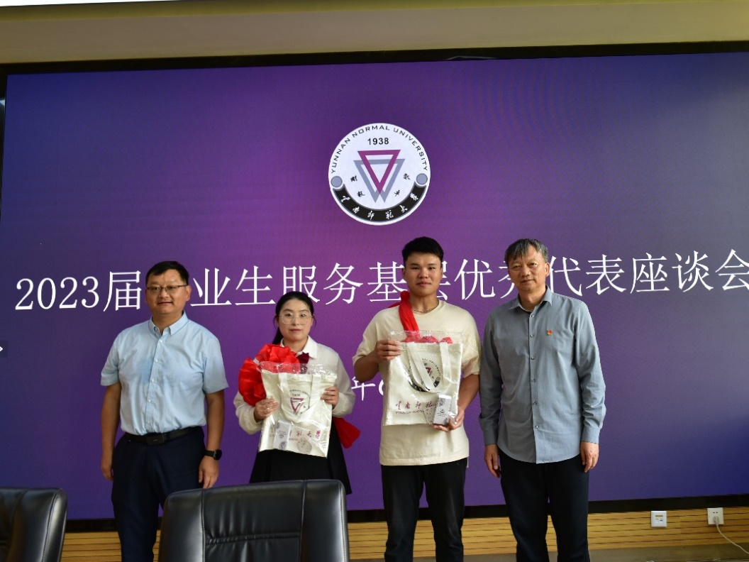 6月29日下午,2023届毕业生服务基层优秀代表座谈会在我校呈贡校区明德4号楼322会议室举行。校党委副书记李宏、副校长甘健侯以及就业处(创新创业学院办公室)、组织部、宣传部、学生处、校团委、研究生处、研究生院等单位负责人、2023届毕业生服务基层优秀代表及毕业生所在学院党委副书记、就业处相关工作人员参加了座谈会,会议由甘健侯主持。