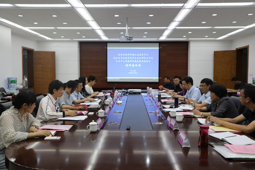 各参与调研高校就免试认定改革考核办法制定情况、培养过程性考核和教师职业能力测试的组织实施情况、中小学智慧教育平台课程学习情况、免试认定数据上报等情况作了汇报。