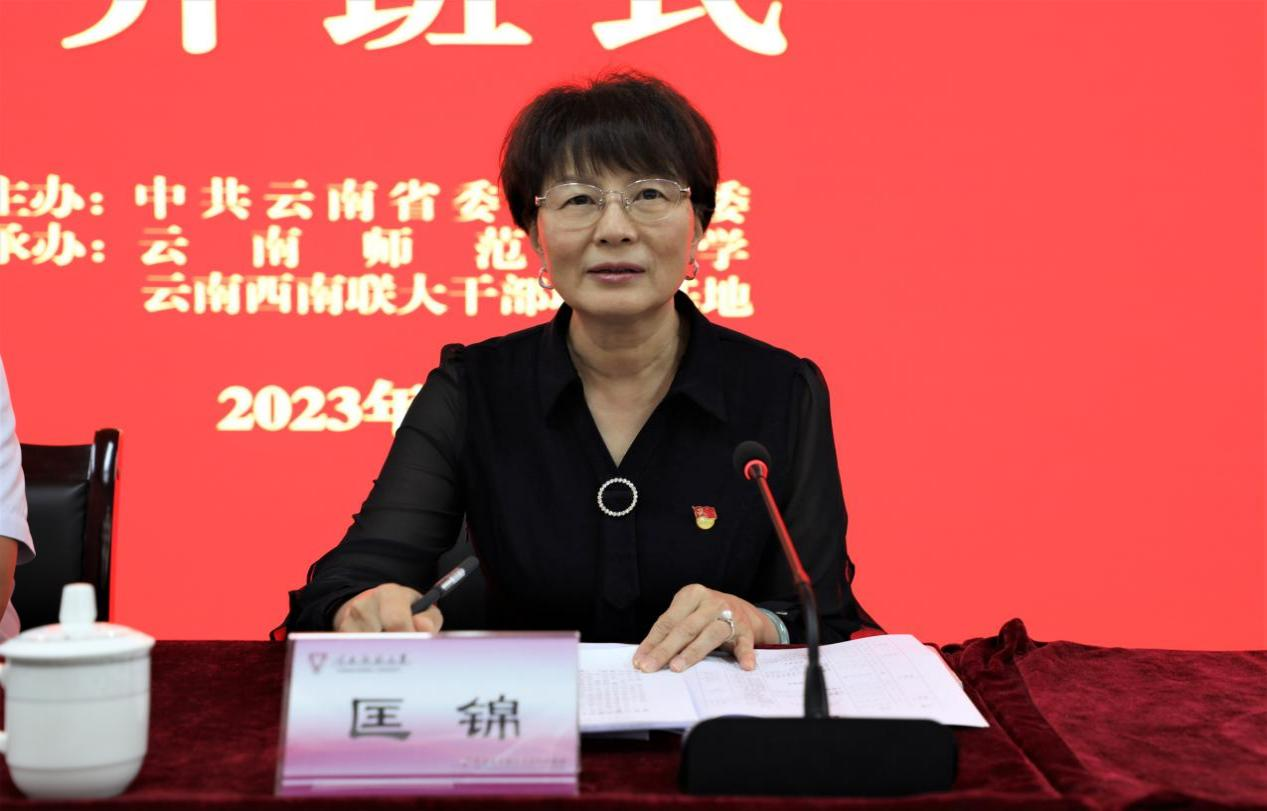 7月5日上午,“2023年云南省高校思想政治理论课教师培训班”在我校西南联大校区开班。省委教育工委宣传部部长赫诗锦作动员讲话,云南西南联大干部培训基地执行主任匡锦致欢迎辞。省委教育工委宣传部副部长厉莉及来自81所高校选派的198名学员参加开班仪式。
