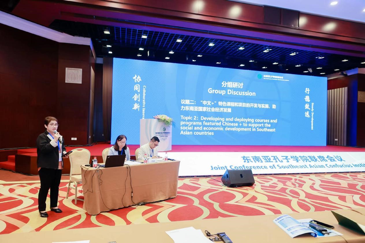 郝淑美在会议期间应邀主持议题为“加强与中外方合作机构,企业、社会组织和其他孔子学院协同发展,为孔子学院争取相互支持”和“‘中文’+ 特色课程和项目的开发与实施,助力东南亚国家社会经济发展”两场讨论。