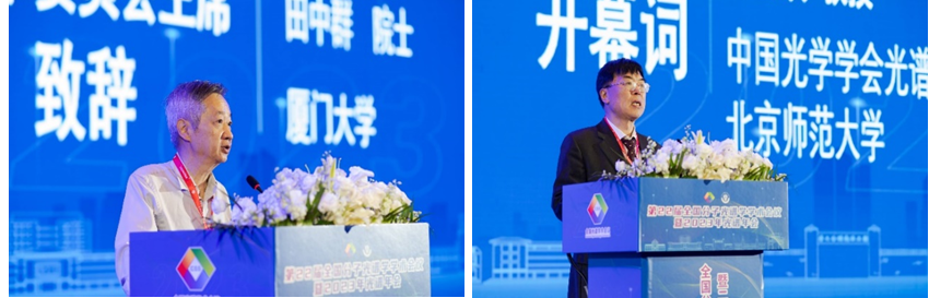 开幕式中,中国光学学会光谱专业委员会主任、北京师范大学谢孟峡教授感谢大家长期以来对会议的支持,并回顾了大会的发展历程,展望未来的发展。学术委员会主席、厦门大学田中群院士致辞并作了大会报告,介绍了我国光谱学科发展的重要方向。学术委员会联合主席、北京大学张锦院士分享了在石墨烯与烯碳纤维的拉曼光谱研究方面所做的一系列前沿成果。365英国上市官网副校长牛治亮对各位专家学者表示欢迎,表示本次会议是国内分子光谱领域规模最大的高水平会议,是展示我国在光谱及相关领域所取得的最新研究成果、促进光谱科学研究朝向理论更深层、技术更尖端发展的高端平台。