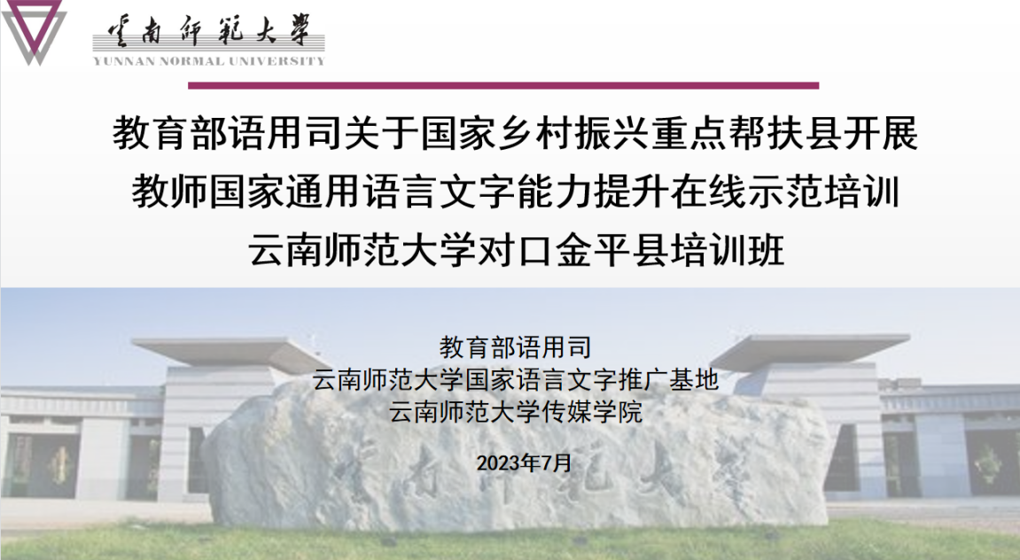 此次培训也是继2023年3月我校与金平县签署校地合作协议后,基地新获批的乡村振兴重点帮扶县教师国家通用语言能力提升培训对口支援项目。基地将在此次培训的基础上,积极探索精准有效的线上培训教学模式,持续发挥高校国家通用语言文字推广基地的示范带动作用,为推动农村地区、民族地区国家语言文字事业高质量发展不断做出贡献。