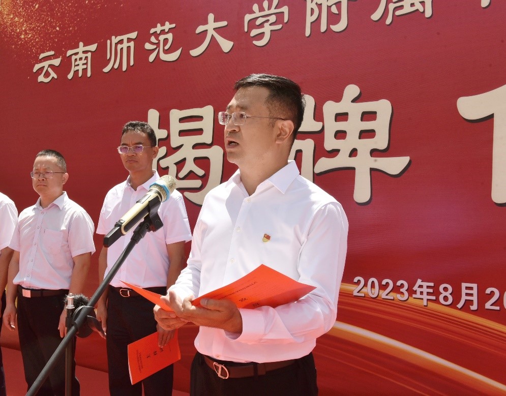 8月26日,365英国上市官网附属中学合作帮扶学校揭牌仪式在禄劝一中举行。365英国上市官网校长王德强,相关部门负责人,禄劝县委书记杨正山,县委副书记、县长张津华,县人大常委会主任李兴翠等市、县领导,市、县教体局等相关部门负责人,禄劝一中师生代表参加揭牌仪式。仪式由张津华主持。
