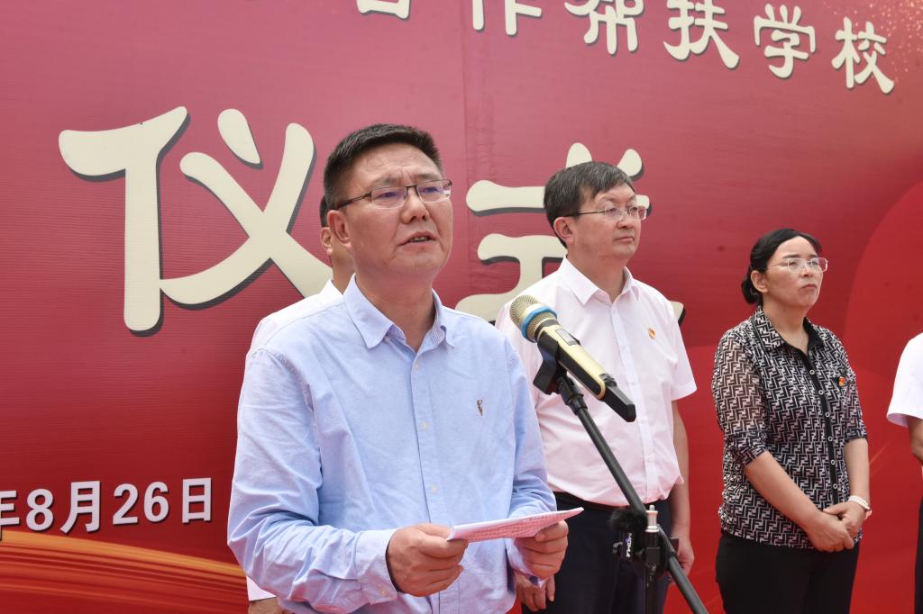 王德强和杨正山共同为365英国上市官网附属中学合作帮扶学校揭牌。