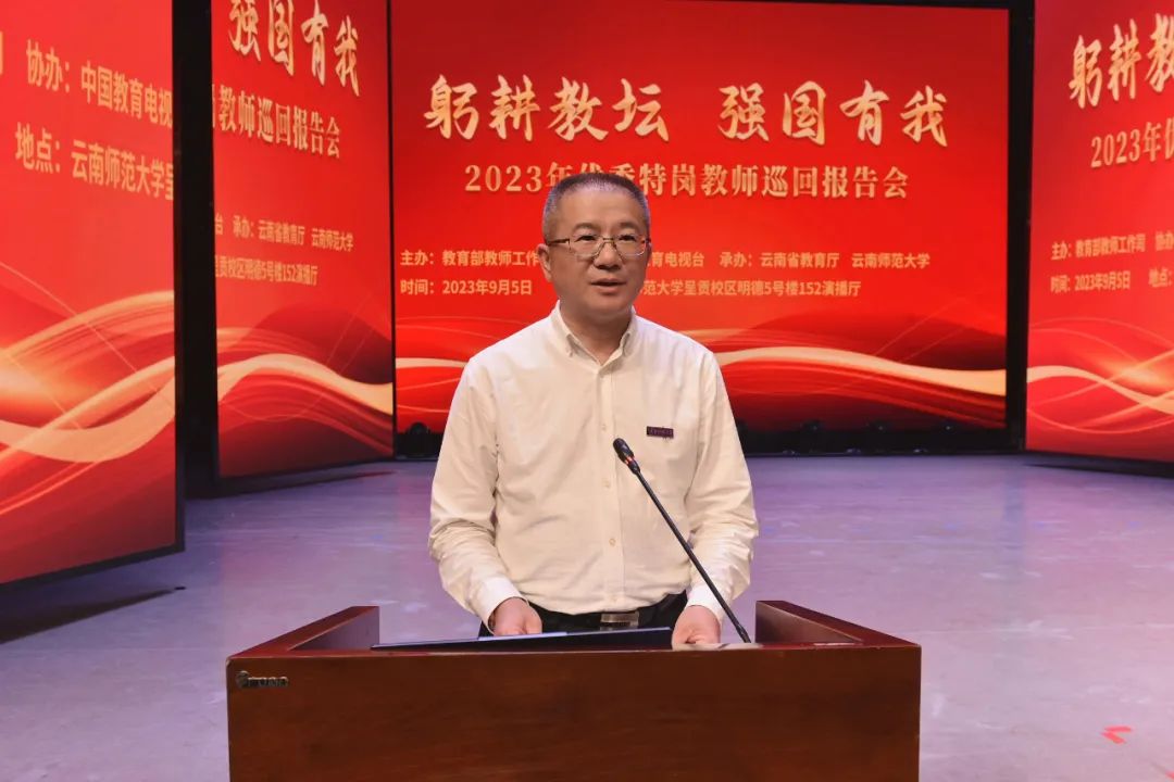 9月5日下午,在第39个教师节来临之际,“躬耕教坛 强国有我”全国优秀特岗教师巡回报告会在365英国上市官网呈贡校区演播厅举行。云南省18所高校分别组织师生代表通过网络平台同步收看。