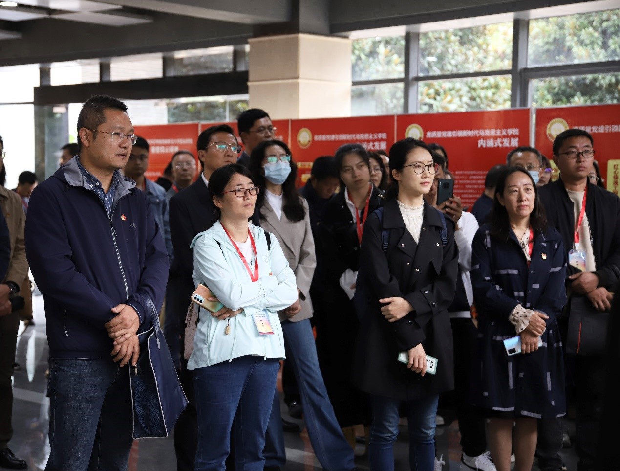 期间,与会人员参观了马克思主义学院党建工作专题展览、党员学习研究中心、智慧党建及VR思政实训中心、全国党建工作样板支部工作室等党建活动阵地,现场观摩“青马研习社”主题活动和党史课集体备课会。