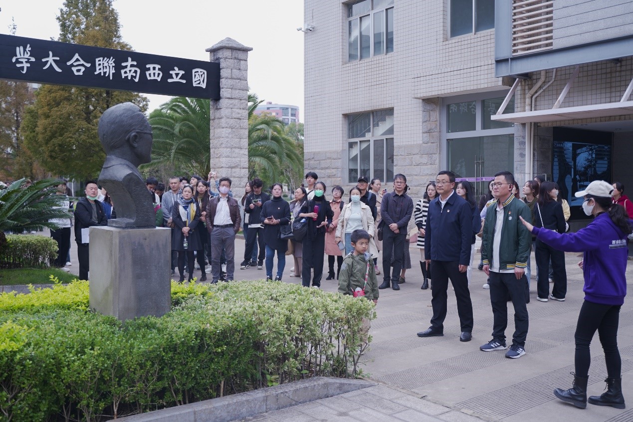 参演师生依次参观了西南联大仿制门、西南联大原教室、“一二·一”运动四烈士墓、西南联大纪念碑等标志性建筑,深入了解联大师生教书救国、读书报国的故事,并在西南博物馆内重温了习近平总书记2020年考察西南联大旧址重要指示精神。