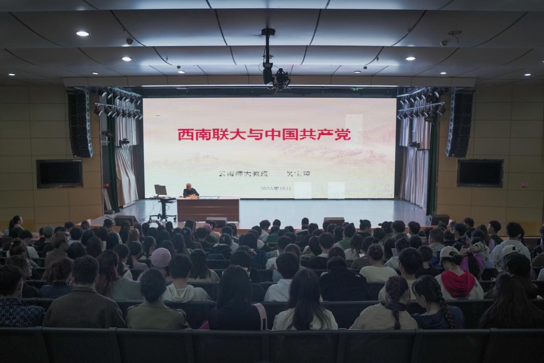 参观结束后,西南联大史学专家吴宝璋教授为全体参演师生讲授“西南联大与中国共产党”专题讲座,对中国共产党领导下联大师生所开展的一系列抗日救亡、反内战争民主的故事进行详细讲解,还为大家讲述了联大校园的“前世今生”,进一步激发了参演师生对西南联大精神的感悟。