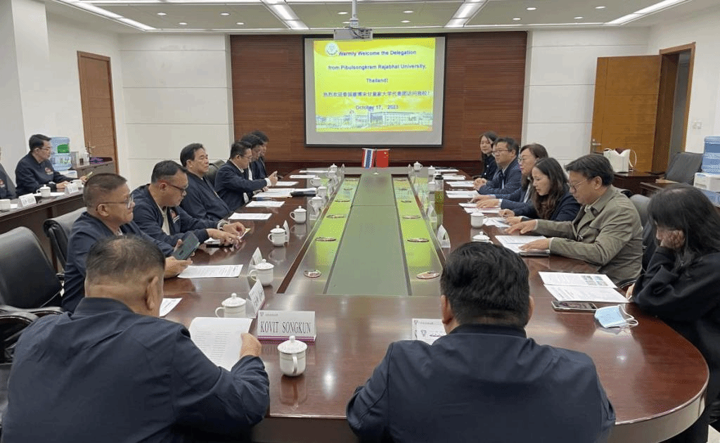 10月17日上午,泰国披博宋甘皇家大学春蓬·塞玛坤校长、管理科学学院院长普拉斯蒂查·纳拉康院长及博士项目委员会委员等一行21人访问我校。