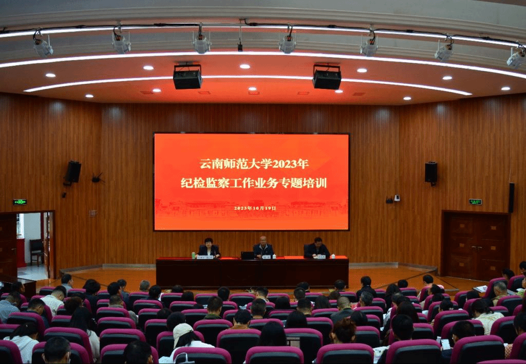 为深入学习贯彻党的二十大、二十届中央纪委二次全会、省纪委三次全会精神,落实党中央、省委全面从严治党决策部署,坚定不移推进党风廉政建设和反腐败工作,10月19日-20日,我校在呈贡校区汇学2幢101报告厅举行2023年纪检监察工作业务专题培训。校纪委书记、监察专员孙剑,校纪委委员、特约监督员、各基层党组织纪检委员,校纪委纪检处工作人员以及省属学校纪检监察“组校院”联动协同第三单元成员单位纪检监察干部共300余人参加培训。