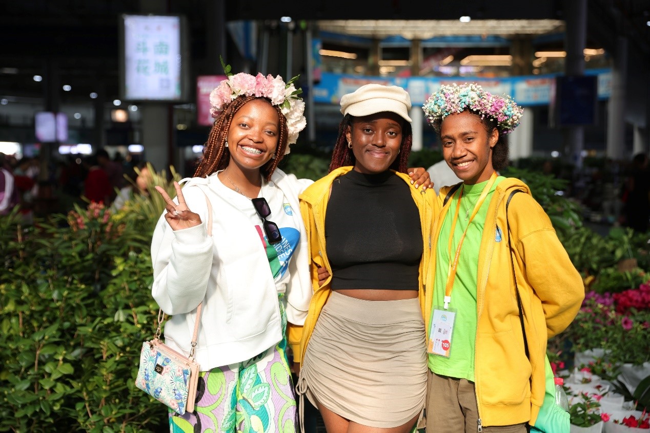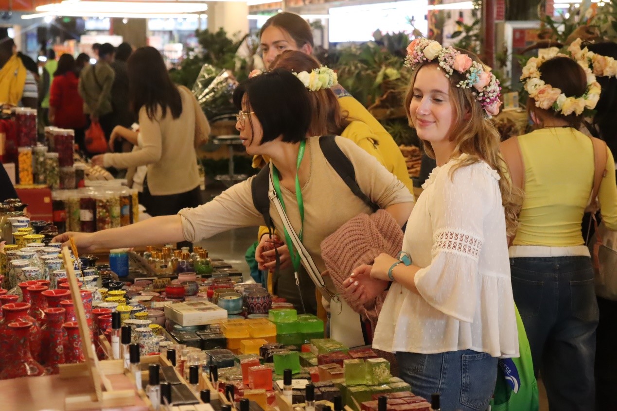 邂逅花市,相遇美好。来自南非的小朋友凯文说:“花是世界上最美好的事物,我喜欢太阳花,因为它永远向着太阳生长,希望我以后也能阳光开朗,做一个像花一样漂亮的女孩。” 来自英国小女孩麦亚表示:“我很喜欢这个花市,这里有各种各样的鲜花,我买了花环和玉石做的手链,我会把它们带回家,它们保存着我来到中国的记忆,也是我和中国的联系。”