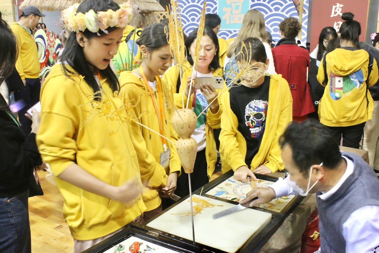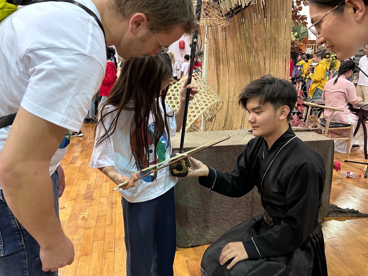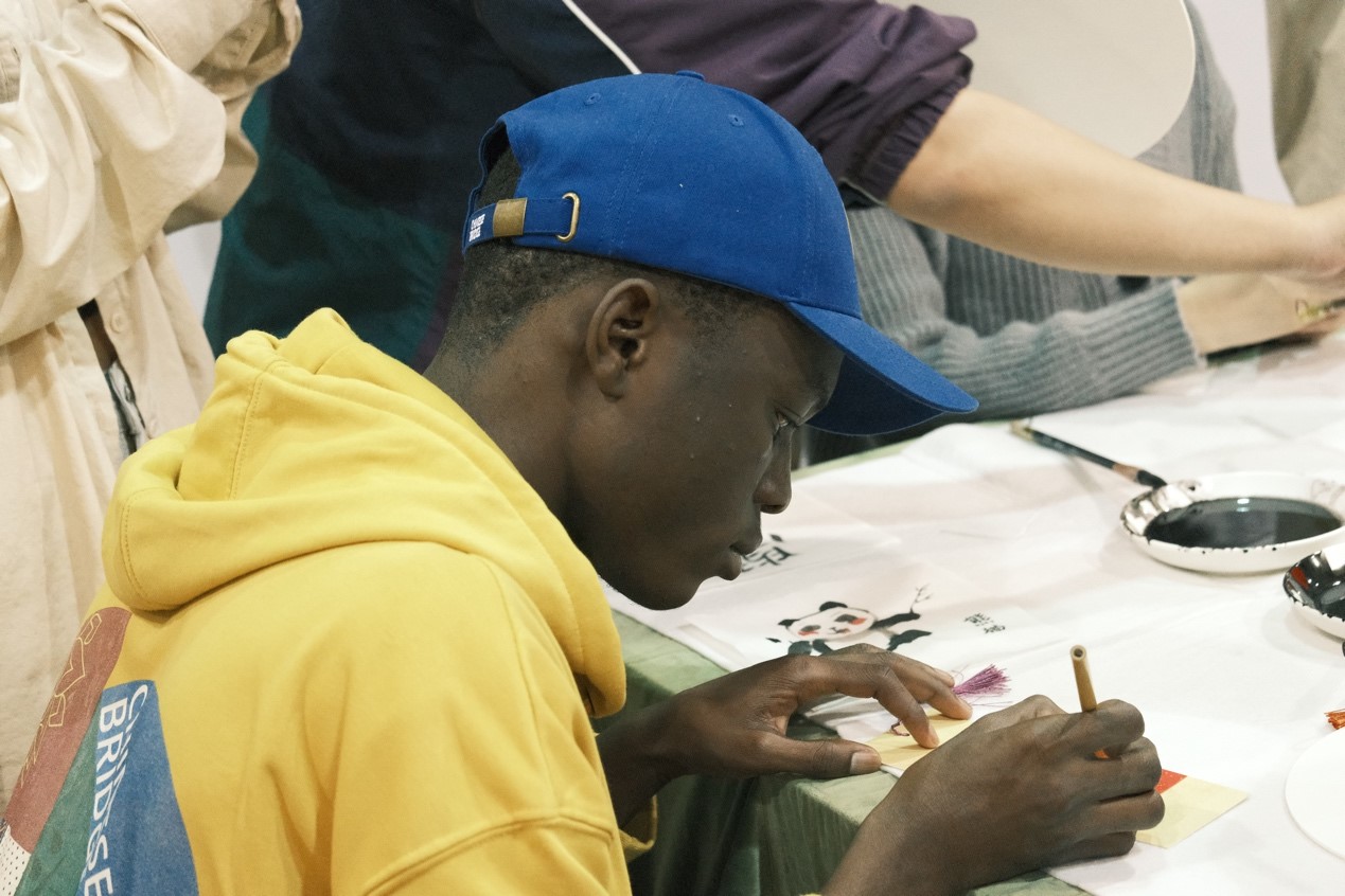 小小的一把团扇,需要多道工序才能做成。不少外国友人拿着毛笔跃跃欲试,迫不及待地在团扇上作画,在工作人员的指导下,不一会儿,树木、花草、汉字等跃然团扇,一个属于他们自己的作品即将完成。来自亚美尼亚的丽丽特说道:“很感激中国朋友们为我们准备的这一系列活动,体验感十分棒,希望在未来的日子里能够接触到更多的中国传统文化。”