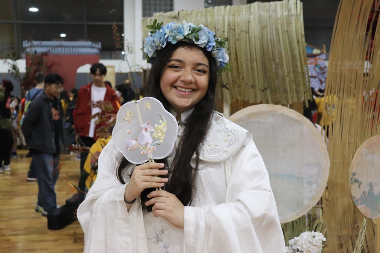 10月26日晚,云南师大国际汉语教育学院汉语为桥俱乐部在呈贡校区东区体育馆为来自97个国家的汉语桥选手精心准备了一场文化盛宴——团扇、插花、汉服、书法、射艺、投壶等多种中华优秀传统文化,供选手们体验、观赏,选手们纷纷参与其中,沉浸体验中国传统文化的独特魅力。