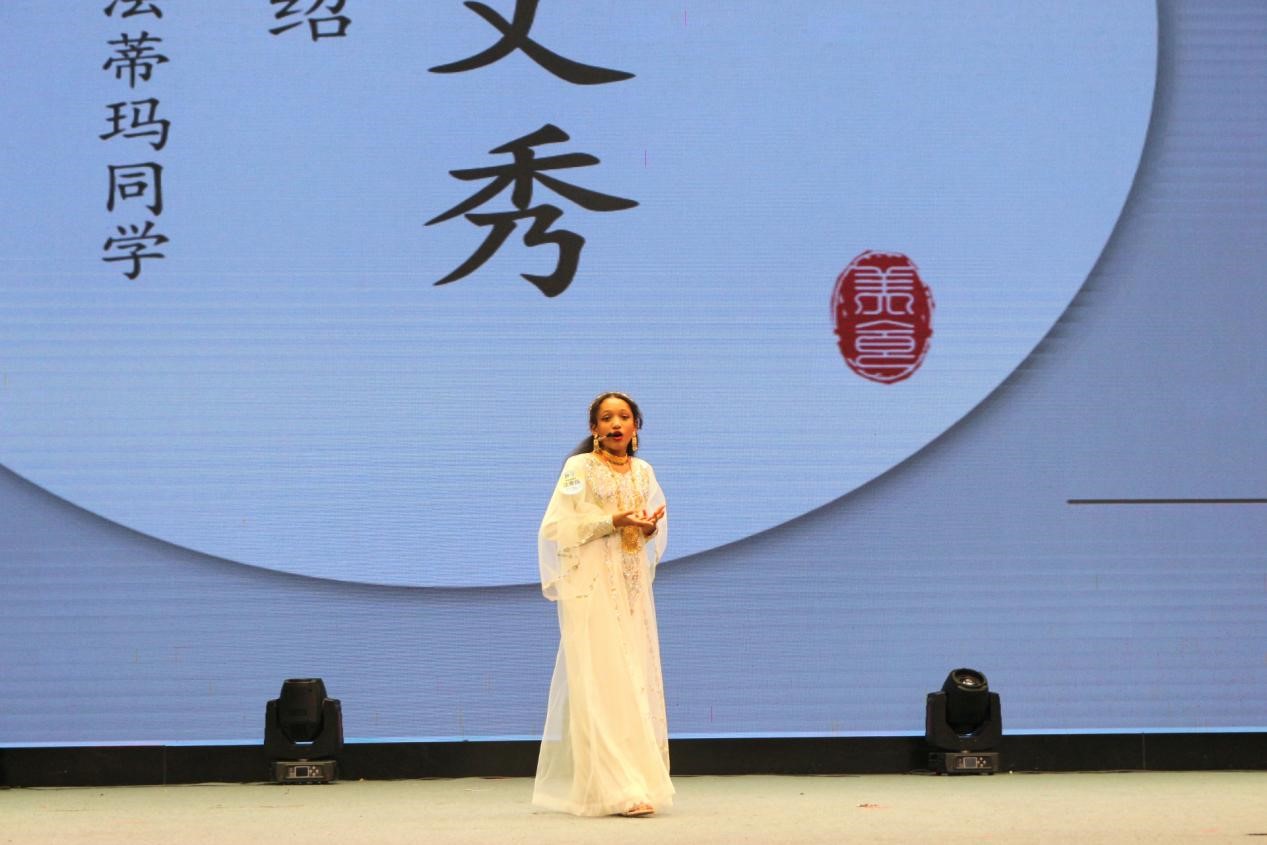 伴随着欢快的音乐,各国选手依次展演。来自印度尼西亚的黄子嘉分享了她学习中文的方法,“在学习中文时,我会把它当成在了解一个故事,每个汉字的形成以及演变历史都有其独特的意义,就像一幅幅独具特色的画卷。学习后我会把学到的内容分享给周围的亲朋好友,自豪感便会油然而生,这也会让我更有动力去学习。”