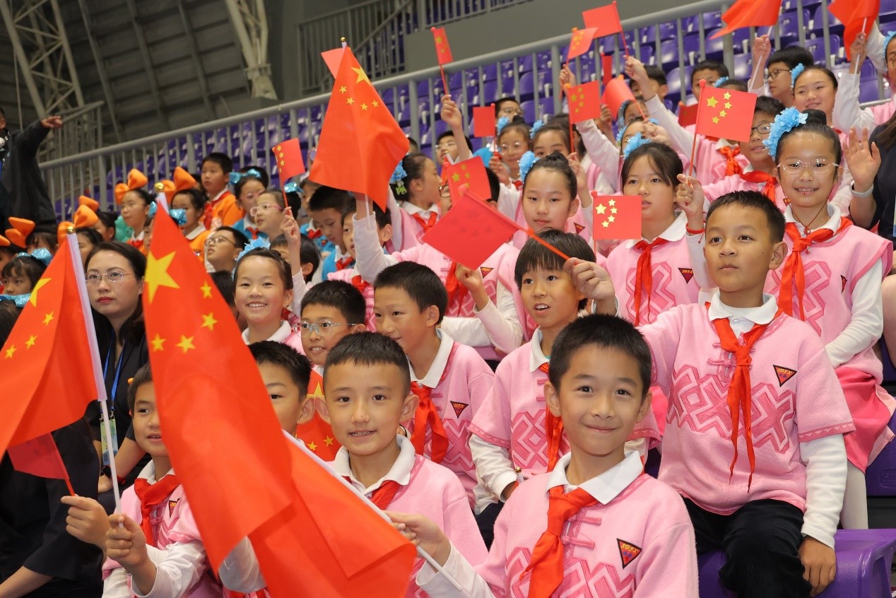 随着优美的民族舞蹈,云师大附小的学生向来自世界各国的小学生选手及陪同家长表示了诚挚的欢迎。“出东门过大桥,大桥底下一树枣……”来自附小五年级学生陈一鹏带来了绕口令《打枣》,字正腔圆的普通话、流利的绕口令引得在座人员纷纷鼓掌。“水千条山万座我们曾走过,每一次相逢和笑脸都彼此铭刻……”来自附小五年级学生赵越宁演唱了《同一首歌》,听着旋律,大家都情不自禁跟唱起来。师大附小的同学们穿着各色的衣服,拿着彩色的手牌,“加油”“点赞”“你最棒”“你真牛”给整个会场增添了更多的趣味。