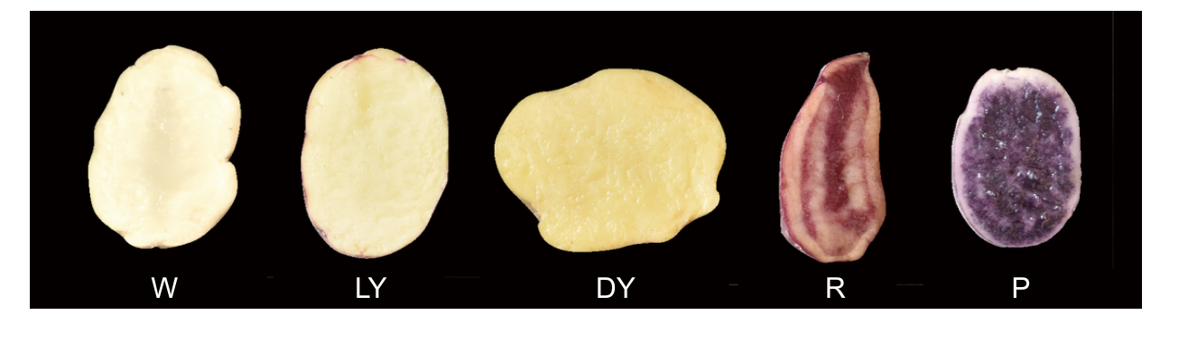 近日,我校马铃薯科学研究院基因组与分子育种研究团队在国际知名学术期刊《Journal of Agricultural and Food Chemistry》(农业与食品化学学报,中科院一区TOP期刊,JCR一区)在线发表了题为 “Multiomics Analysis Reveals the Chemical and Genetic Bases of Pigmented Potato Tuber” 的研究论文。该研究整合转录组、代谢组及蛋白组数据,解析了马铃薯不同薯肉色泽(红色、紫色、浅黄和深黄)形成的物质和遗传基础,揭示了薯肉花青苷和类胡萝卜素生物合成途径的关键结构基因,并新发现多个调控薯肉色泽积累的转录因子。相关研究为马铃薯薯肉色泽调控及品质育种提供了重要的遗传信息。