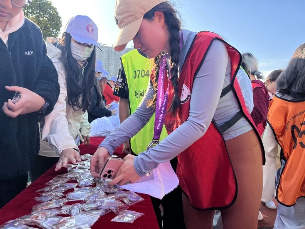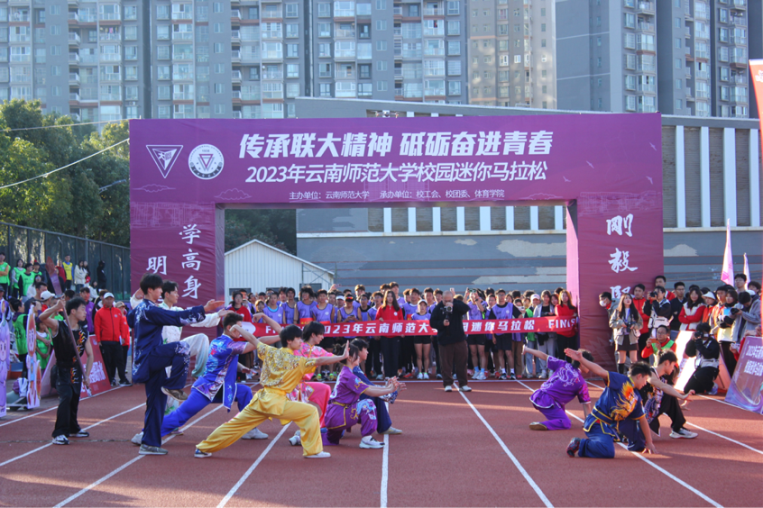 扬武术之魂,展少年风姿。运动员们在跑道挥洒汗水之时,体育学院学子为大家带来精彩的武术表演,为运动员们加油助威。补给站的志愿者们,为运动选手提供了暖心服务,也是跑道上一道靓丽的风景。