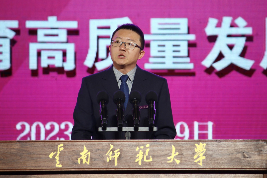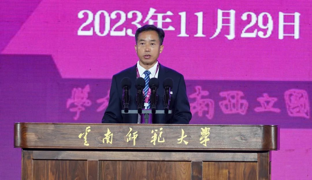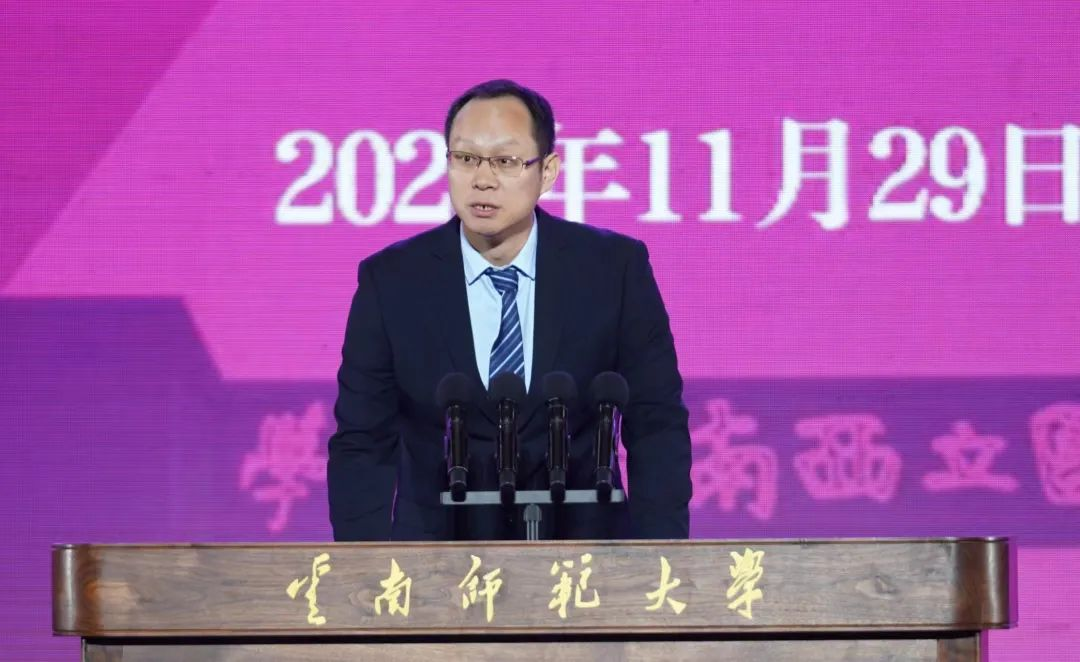 牛文利作为合组西南联大的北京大学、清华大学、南开大学三校代表致辞。他指出,85年来,南开、云师同气连枝,始终保持着各领域多层次的密切交往和深入合作。尤其是两校战略合作框架协议签署5年来,在学科建设、合作研究、学生实践、西南联合研究生院建设等多方面取得了显著成效,共同传承着不朽的联大精神。“我们相信云师人一定会团结奋斗、不负荣光,加快建设西部领先、辐射南亚东南亚的高水平师范大学,在新时代担当新使命、展现新作为、谱写新篇章。”
