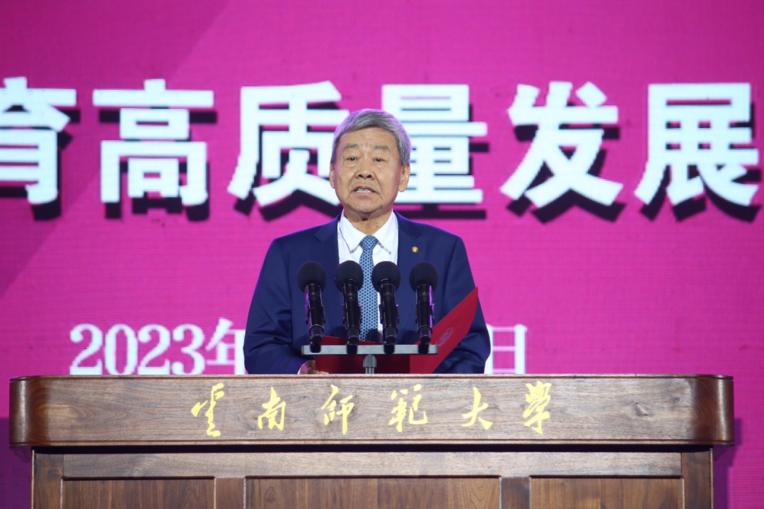 “黄钰生先生认为,教育是一种光源的传递。今天,我们欣慰地看到,那种光源依然在传递,在不间断地发热发光。85年来,云师大秉承联大传统,弘扬联大精神,扎根云南大地,培养各级各类人才40余万人,为边疆教育作出了巨大的贡献,成为‘红土高原上人民教师的摇篮’。”饶子和以校友的身份深情讲述了南开大学秘书长、联大师范学院创始院长黄钰生先生的动人事迹。他希望大家携手并进,拿着前人留下的“钥匙”,无愧于前人的期待,把北大、清华、南开、云师大办得更好。