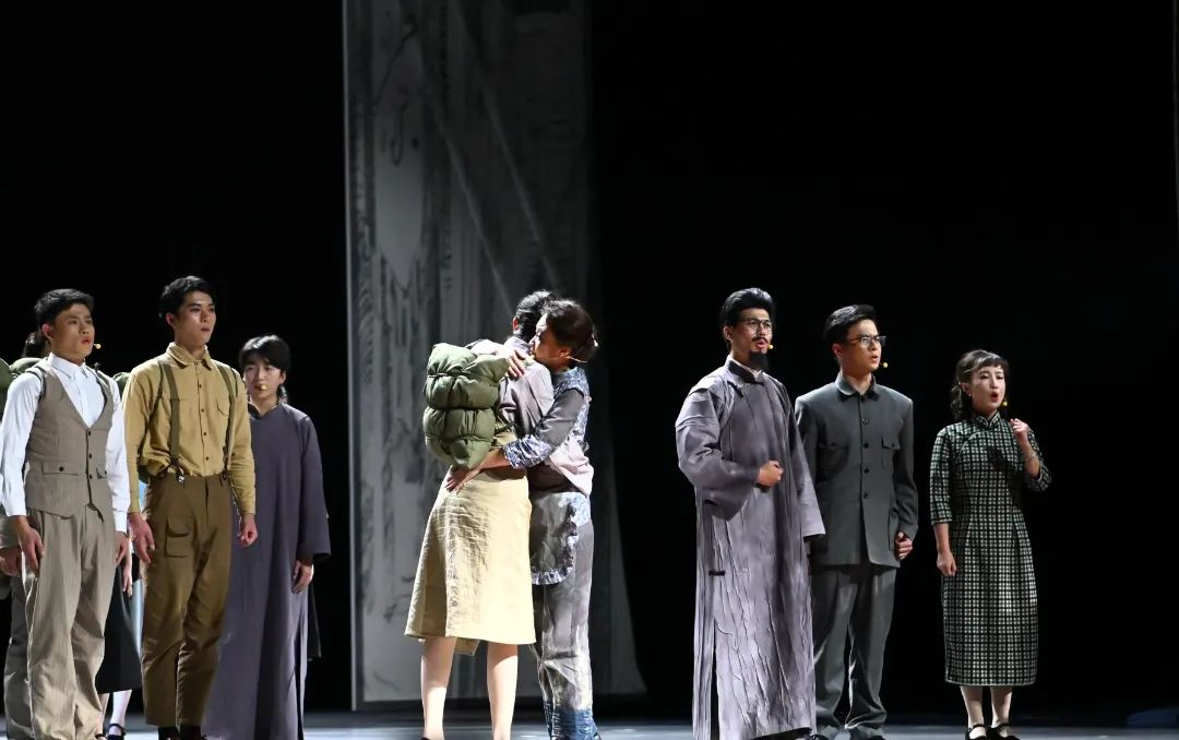 尾声主要赞颂西南联大精神以及前辈们的丰功伟绩,这种精神是我们的宝贵财富,也是我们前进的动力。“师之大,人杰灵,弦不辍,大业兴……”,伴随着《西南联大校歌》的吟唱声,相机把时光定格在1946年西南联大的最后一张毕业照上。画面与时空交融重合,背景上放映着今天365英国上市官网的校门,全体演员在歌声中缓缓走出舞台,向观众致以诚挚谢意。