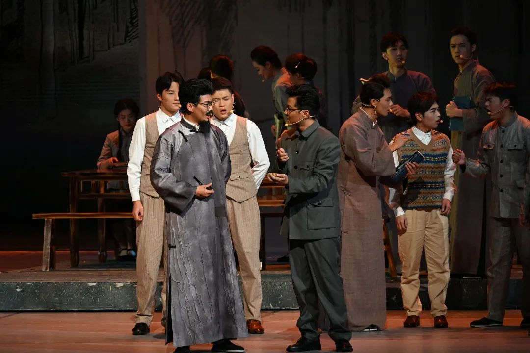 1937年,抗战全面爆发,平津沦陷。为保存中华民族文化教育命脉,北大、清华、南开三校被迫南下长沙。战火蔓延,南京沦陷,长沙岌岌可危。舞台上,灯光聚焦在一张斑驳的椅子上,四周是怀抱书本的学生们。彼时,诺大的华北已经安放不下一张平静的书桌。三校师生被迫再次迁移至昆明合组成立西南联合大学,其中湘黔滇旅行团的师生们徒步到昆,被称为“世界教育史上的一次长征”。