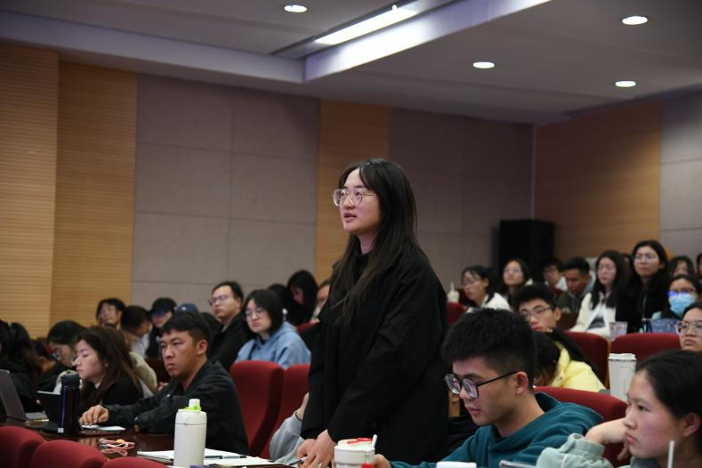 吴应辉对国际中文教育研究趋势进行了分析,指出“国际中文教育学科理论研究、虚拟空间中文教育研究、国际中文教育数智化研究”仍将是今后研究的热点和研究趋势。同时,他对2018年以来国家社会科学基金资助的“国际中文教育”选题的立项情况做了统计分析,对申报“国际中文教育”专业相关课题提出了自己的看法。随后,吴应辉与师生展开了热烈讨论,并对师生们提出的“国际中文教育中的文学研究”“国际中文教育中的文化研究”“留学生国情教育”等问题进行了细致解答。讲座取得较好反响,现场师生纷纷表示收获满满、受益匪浅。
