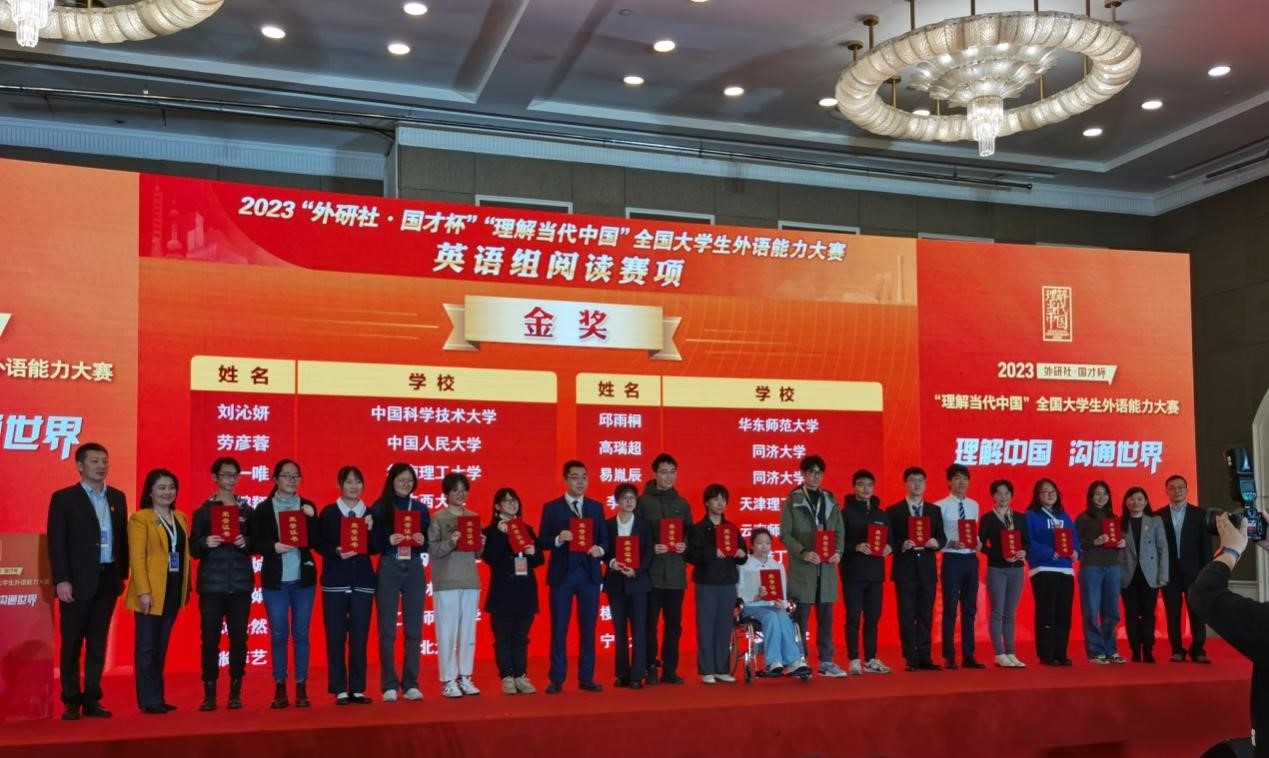 近日,在2023年“外研社•国才杯”“理解当代中国”全国大学生外语能力大赛中,外国语学院2021级英语专业李丹同学在英语组阅读赛项中表现优异获金奖,全国仅20名选手获金奖,2022级日语笔译专业陈月燕同学在日语组表现优异获银奖。这是我校学生在“外研社•国才杯”英语大赛中取得的最好成绩。
