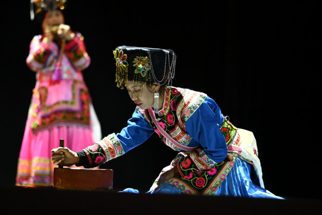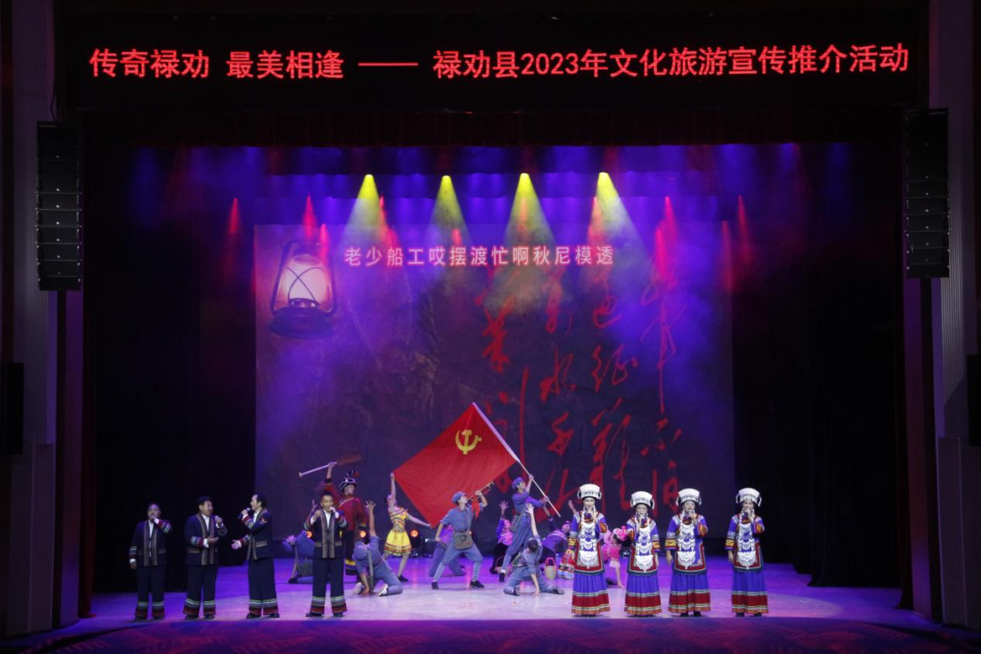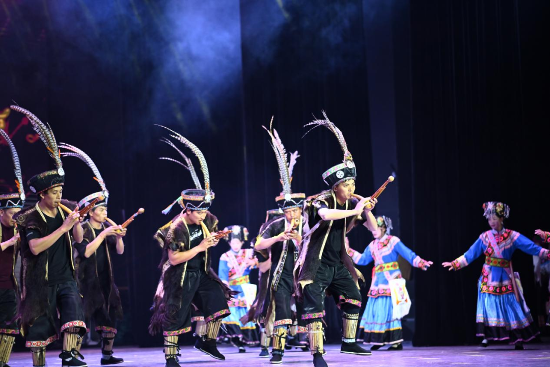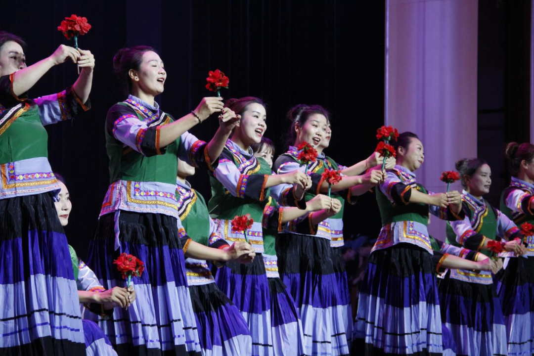14日晚,文艺演出在音乐舞蹈学院演播厅精彩上演。演出分为罗婺传奇、红色记忆、时代风华三个篇章。禄劝县带来歌曲《彝山的月亮会唱歌》《彝人故乡》《金沙水暖》《醉美轿子山》、舞蹈《针尖上的梦》《傈僳欢歌》《情深意长》《花样跌脚舞》、快板《渡江记》、民族服饰走秀《花语云裳》,我校师生带来器乐合奏《阮之火》、舞蹈《我心中的西南联大》《云水伊人》以及歌曲《共创辉煌向未来》等节目。慷慨激昂的红色歌曲、热情欢快的民族歌舞、独具特色的器乐合奏、多彩的民族服饰走秀……精彩的演出为现场观众带来了一场视听盛宴。