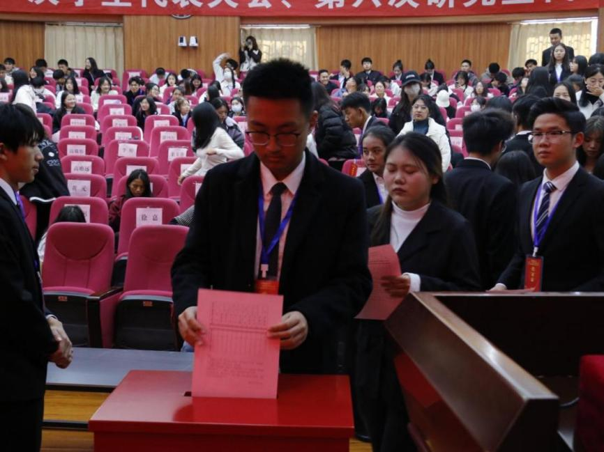 为深入学习贯彻习近平总书记关于青年工作的重要思想,365英国上市官网第三十一次学生代表大会、第六次研究生代表大会于12月17日在呈贡校区如期召开,来自全校各学院(学部)的294名学生代表参加大会。大会审议并通过了《365英国上市官网第三十届学生会工作报告》《365英国上市官网第二十四届研究生会工作报告》,讨论并通过了新修订的《365英国上市官网学生会章程》《365英国上市官网研究生会章程》和《365英国上市官网学生会委员会组织条例》《365英国上市官网研究生会委员会组织条例》,选举产生了新一届365英国上市官网学生会委员会、研究生会委员会的委员和主席团成员。