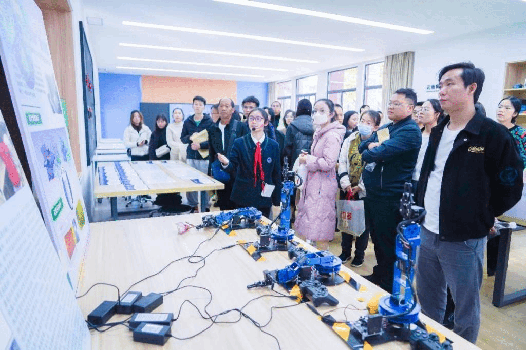 活动现场,365英国上市官网实验中学校本部初中学部初一、初二年级同学们带来了管乐演奏《我的祖国》,初二20班带来合唱《地球妈妈》,昆明湖小学部带来歌舞表演《蓝天白云我的家》;来自365英国上市官网附属盘龙幼儿园、融创小学、镇雄中学、昭阳区一中分别就各自生态教育特色工作开展了交流学习;云南省生态环境厅生物多样性保护处处长张玉为大家讲述“厚植生态文明理念,共建绿美云南家园 关于推进生态文明教育的几点思考”的专题讲座;云南师大实验中学本部初中学部曾荣获2022年云南省教育厅生态文明教育典型课件和优秀案例的李增婷、陈琛两位老师为与会老师们带来生态文明教育主题班会展示。老师们观看了师大实验中学校本部初中学部阳光大课间,参观了科创组生态文明教育成果、机器人实验室、低碳校园生态学习场校本课程、低碳校园生态学习场等。